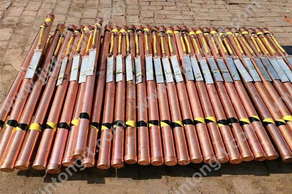 2、電解離子接地極管外壁噴涂一層高分子防腐導電材料,具有優(yōu)良防腐能力和極低的電阻率。極管上端和下端分別設(shè)計了水分吸收孔和離子釋放孔。